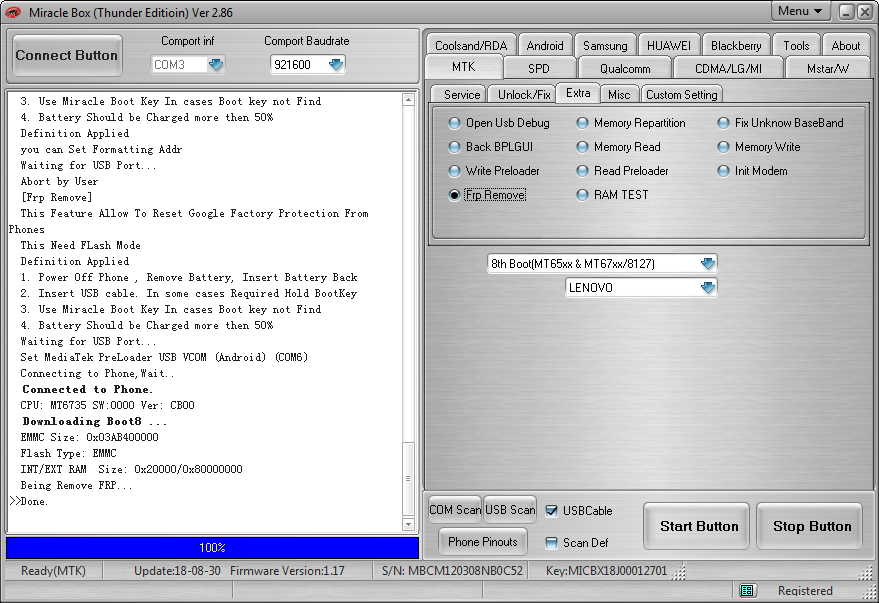 LENOVO A6600D40 FRP REMOVED SUCCESS BY MIRACLE THUNDER 2.86 BETA TEST