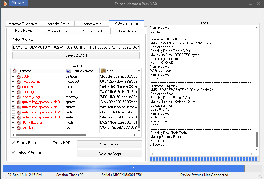 Moto xt1022 hang solved by flashing with falcon moto 2.0