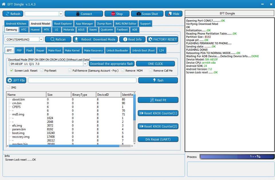 Remove SCREEN LOCK FRP ON OEM ON A810F 7.0 U1 DONE WITH EFT DONGLE