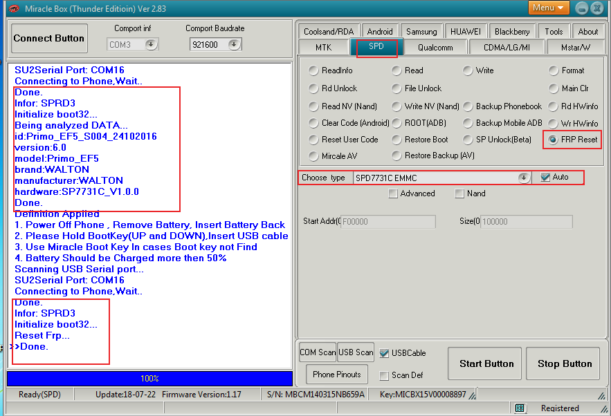 Walton Primo EF5 FRP lock Remove done By Miracle Thunder Edition 2.83