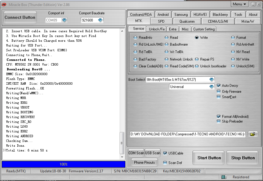 Tecno h6 flash done by miracle thunder edition v2.86