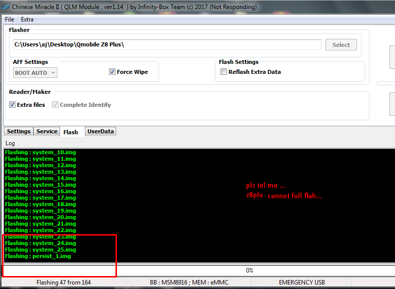 Running FireHose on BBID : MSM8916 , FLASH : eMMC , mVER : 1