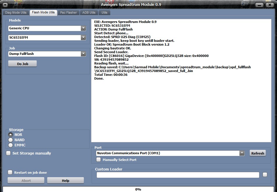 Qmobile ultra 3 SC6531E Read flash done with avenger box