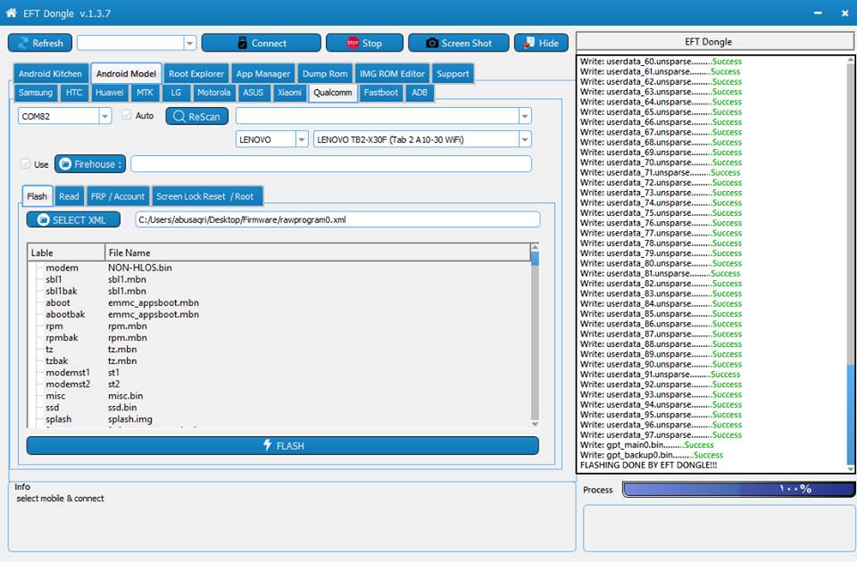 tb2-x30f WRITE FLASH DONE BY EFT DONGLE