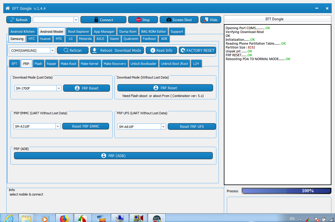SAMSUNG J700F FRP REMOVED SUCCESS BY EFT DONGLE 1.4.4