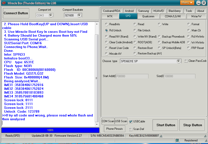 winstar discovery 5 Lock pin Read Code Without Data Loss Done By Miracle Thunder Edition 2.86