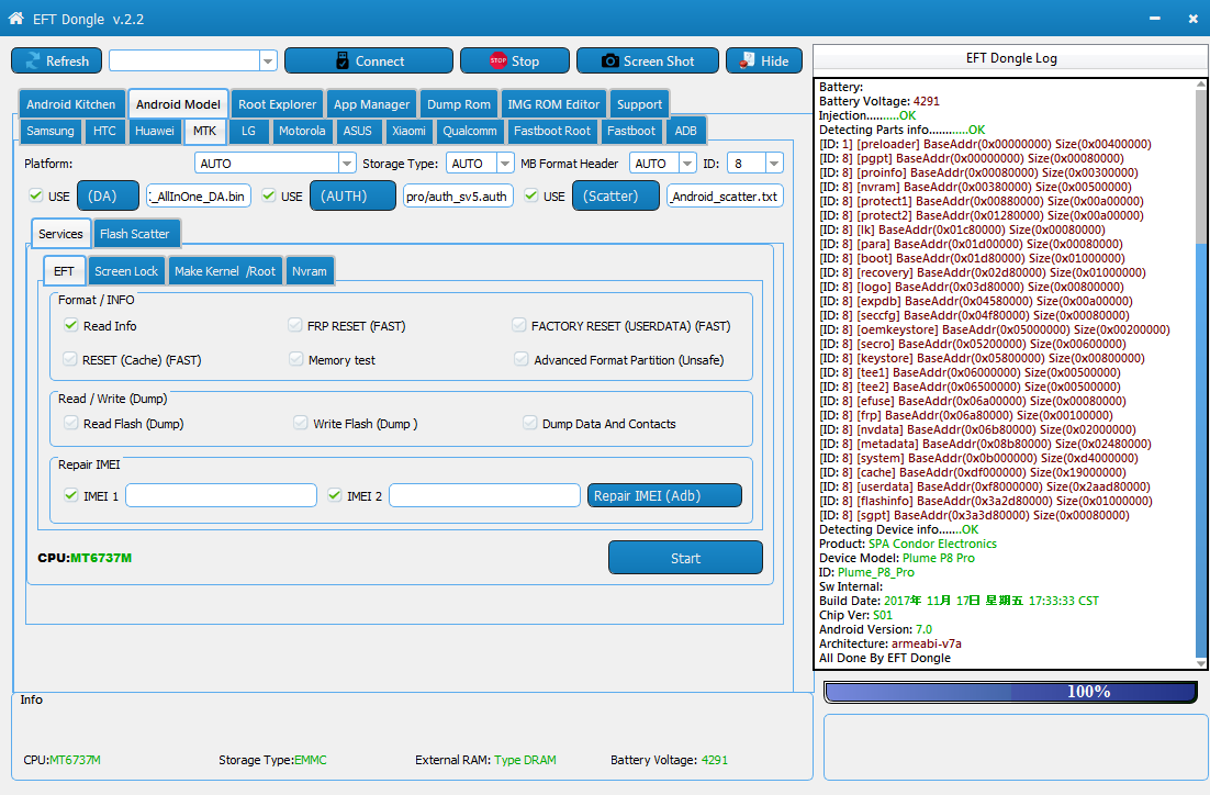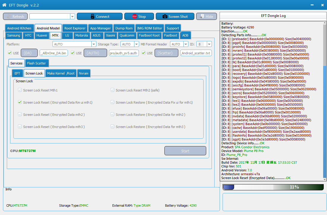 Device Info/ ![]() Screen Lock Removal: EFT has frozen during the process, but the screenlock was successfully erased.... ![]() ![]() |