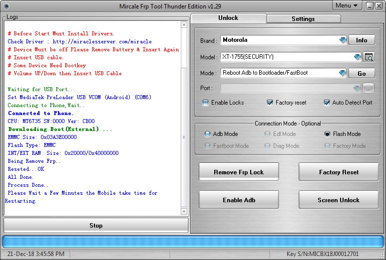 TODAY ANOTHER MOTO XT 1755 PATTERN AND FRP REMOVED SUCCESS BY MIRACLE THUNDER FRP TOOL 1.29