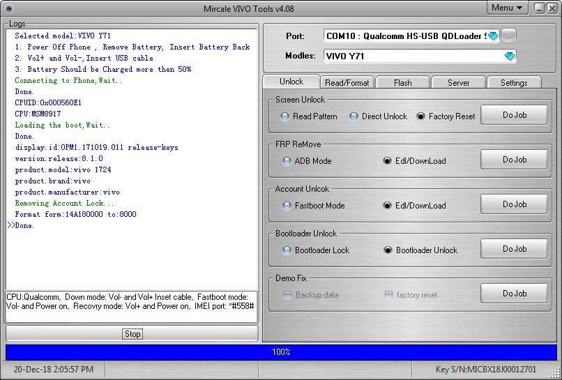 VIVO Y71 FRP REMOVED SUCCESS BY MIRACLE VIVO TOOL 4.08