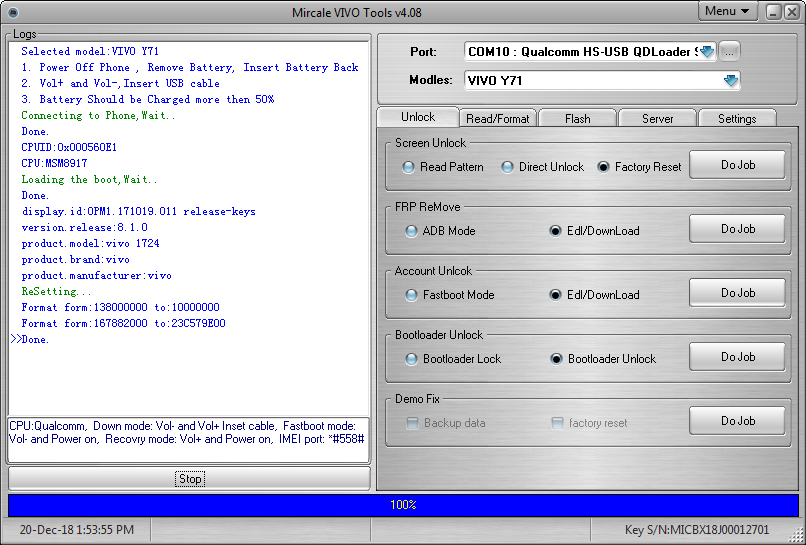 Vivo y71 pattern removed success by miracle vivo tool 4.08
