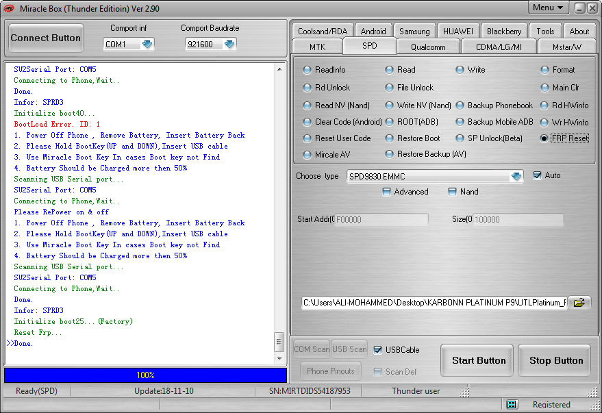 Karbonn platinum p9 spd [9832e] frp removed success by miracle thunder 2.90