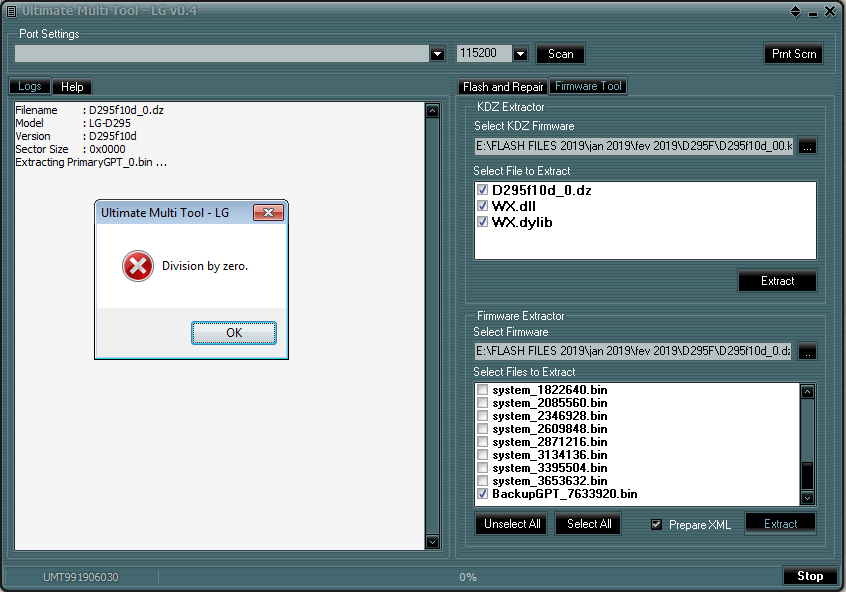 I am trying extract firmware for use QC Fire and repair boot (But i alway got this error Division by Zero.