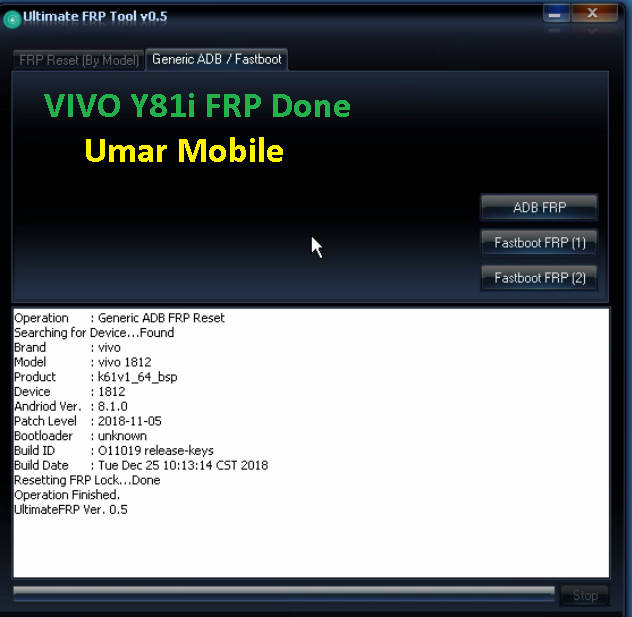 VIVO Y81i vivo 1812 FRP Done Via UMT FRP Tool